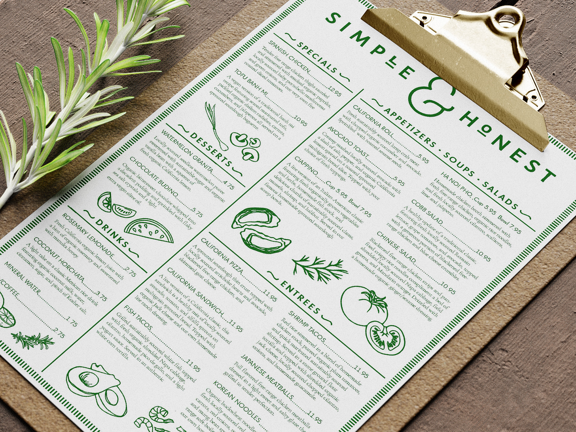 Evoking the pristine beaches and fresh living off the California coast, Simple & Honest is a food takeout brand that features delectably fresh ingredients in line with wholesome and health-conscious living. A welcome alternative to traditional fast food, the aim of Simple & Honest is to rejuvenate the body and soul with a carefully curated/seasonal menu along with sustainable harvesting of local ingredients.